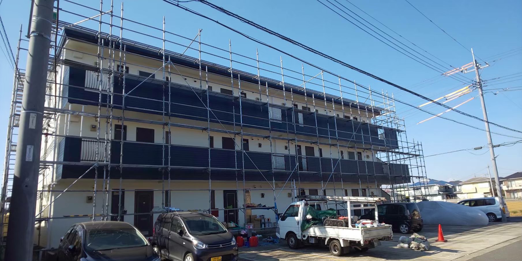 ひたちなか市にある築20年のマンションで、外壁のひび割れや剥がれが目立つようになり、大規模な外壁改修工事を実施しました。