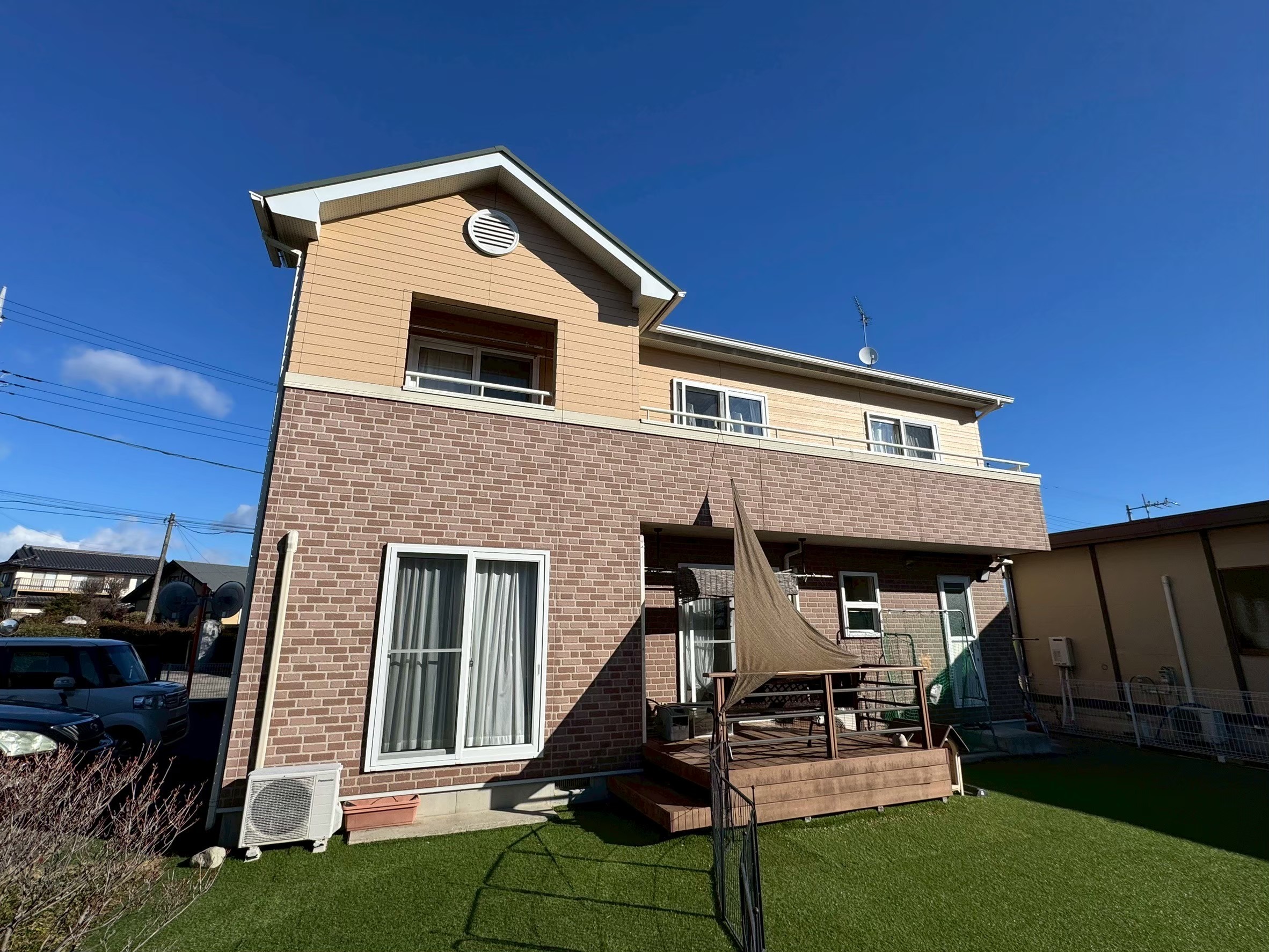 那珂市 那珂市 Iさま邸 屋根・外壁塗装工事 美観性を求めている方にオススメの『ダブルトーン施工』の施工事例 外壁・高耐候ラジカルシリコン 屋根・熱交換塗料+光触媒 工事の概要 使用商材・建材■屋根・・・うらうらの羽衣(熱交換塗料)+塗り神からのおくりもの(光触媒) ■外壁・・・ロイヤルシリコン(水性ラジカルシリコン塗料) ■コーキング・・・サンライズH100(耐候年数30年) お客様からのご要望 I さまの悩み、、、 築15年になり、塗装のタイミングはいつ? 塗装をしてしまうと、お気に入りの模様入りの外壁は模様が消えてしまうの? とは言え、色も変えたい、、、 弊社からのご提案 I 様は塗装によって、外壁の模様が無くなってしまうことを気にされていたので『ダブルトーン仕様』を提案させていただきました。 『ダブルトーン』のメリットとデメリットをお伝えした上で I 様ご夫婦は、お若いので『最後の塗装』にはこだわらず、美観を重視させていただき尚且つ 2階の室内が、ムワッとするという事でしたので、屋根に『熱交換塗料』を使わせていただきました!! 施工前 施工後 お客様の声と担当の声 綺麗な仕上がりでイメージ通りの色味 そして、2階に上がった時のムワッとする感じがなくなりました。 そのようなお言葉をいただきました。 今回、コスト面もそうですが耐候性と美観性のバランスを見ながら、提案させていただいたプランに納得していただき『ダブルトーン』の色味も素敵に仕上げられたことを嬉しく思います!! ひたちなか市 Kさま邸 外壁・屋根塗装工事 ひたちなか市 Sさま邸 一部外壁張り替え・外壁塗装工...